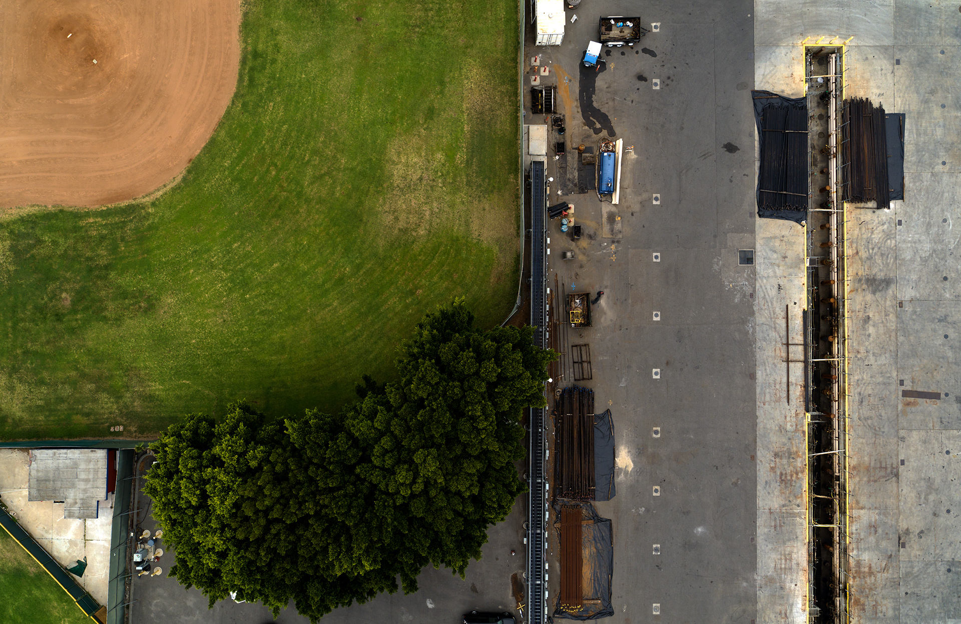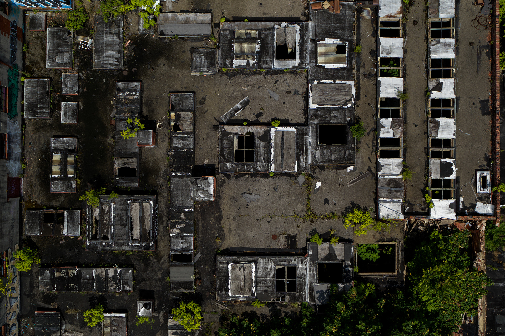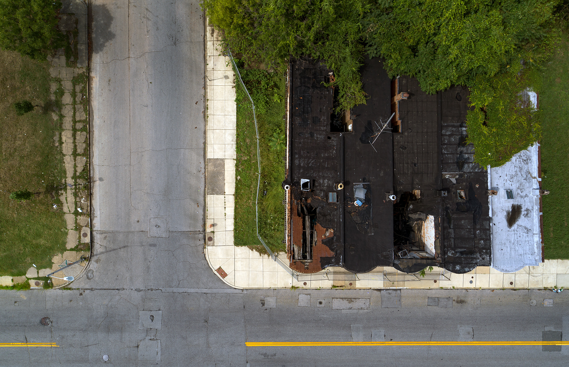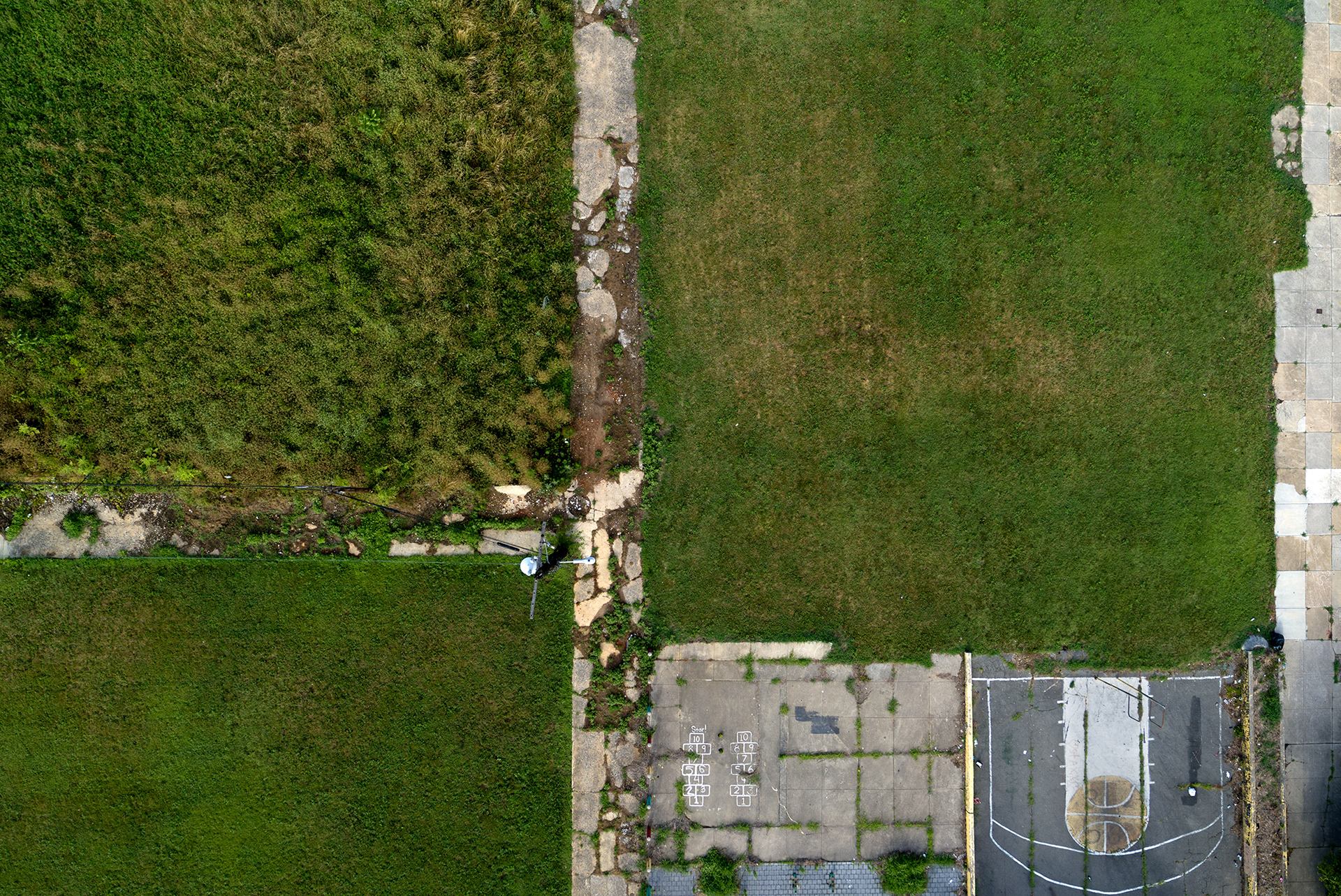 This project is also an exploration of how we observe. Compositionally, shooting from directly above, decades of history fuse together to become a flattened plane, the abstract details of the past scratched onto roofs, streets, and sidewalks.