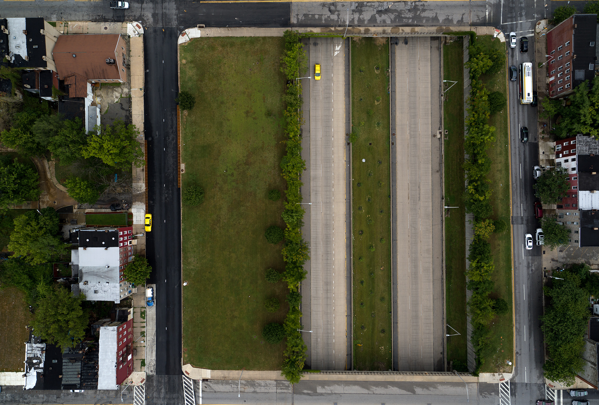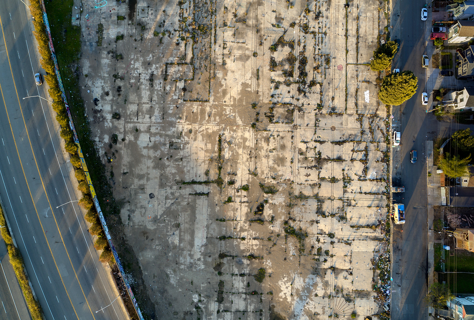 Highways were needed to connect newly built suburbs to urban cores. The decision on where to build these highways wasn’t arbitrary. Urban planners often cited “slum clearing” as a justification for construction. Redlined neighborhoods became the de facto location of these routes, which often divided the neighborhood and further depressed real estate values. Route 40 (below) cuts through redlined West Baltimore. Originally planned as the terminus of Interstate 70, today the depressed highway is only a little more than a mile long and rarely used. A spur of Interstate 280 (above) in San Francisco divides residential and industrial areas of the city. A plan backed by the mayor’s office calls for the demolition of the highway, part of a larger trend across the county.
