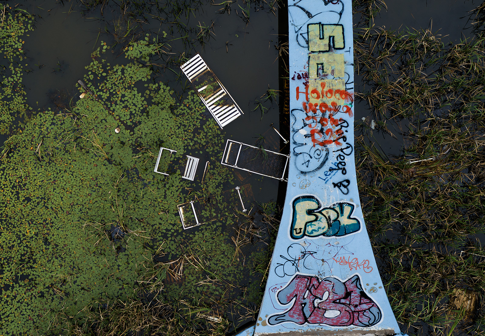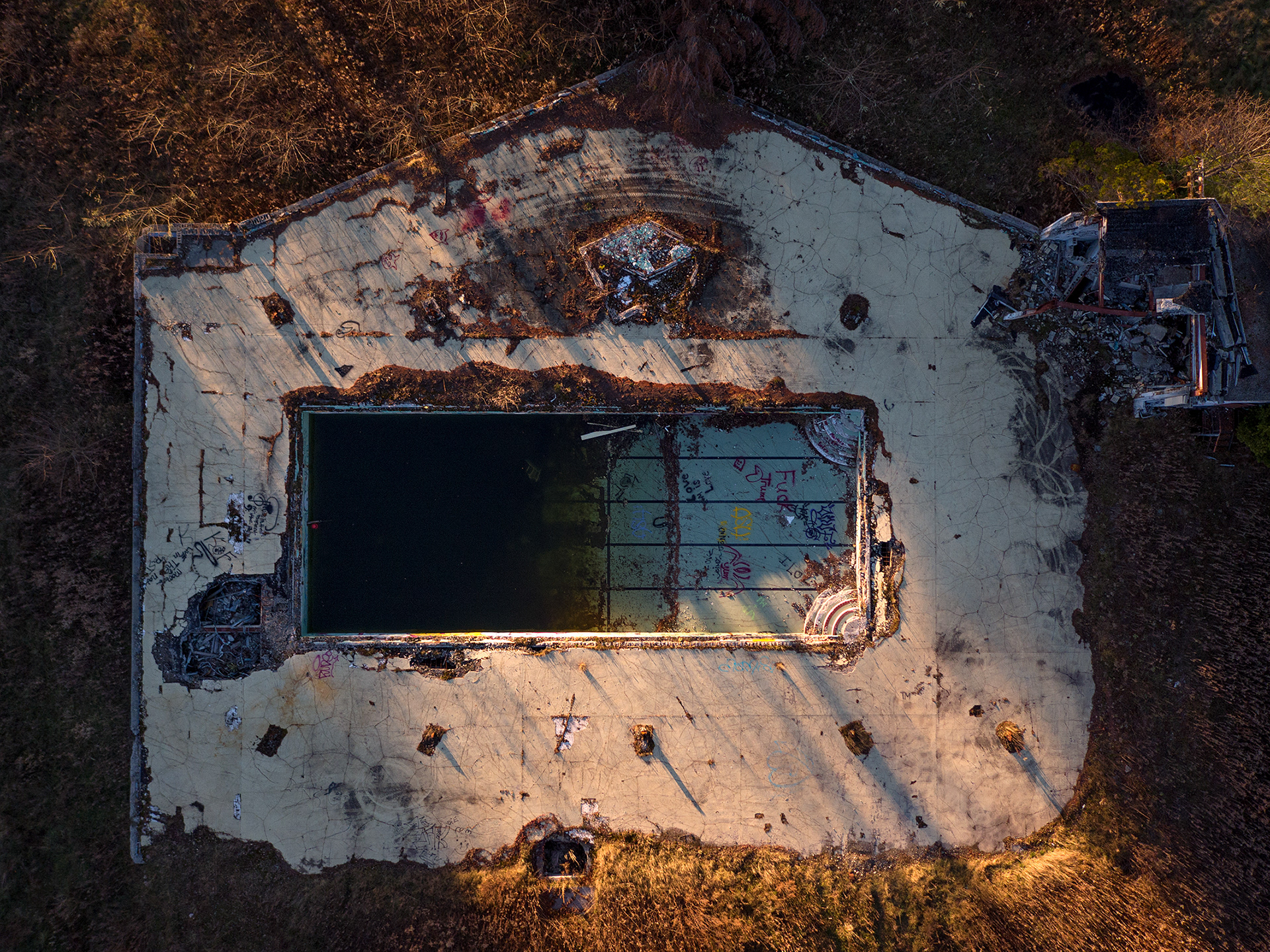 It’s also an exploration of how we observe the former resort as blends with nature. Shooting from a short distance above the ground, landscapes become intimate, the ground more visually accessible.